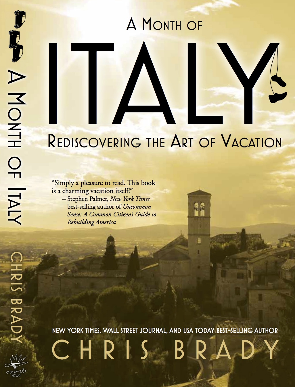 “Vacationing truly is a lost art, and Brady poignantly and beautifully illustrates why it is so vital for driven leaders. A timeless treatise on ‘sharpening the saw,’ A Month of Italy is a book I will sip and savor, ponder and reflect on time and time again. Not only are Chris’s insights powerful and refreshing, but his vivid and witty writing is simply a pleasure to read. Reading this book is a charming vacation itself, and it will inspire you to vacation deliberately, effectively, and joyfully.” – Stephen Palmer, New York Times best-selling author of “Uncommon Sense: A Common Citizen’s Guide to Rebuilding America”
